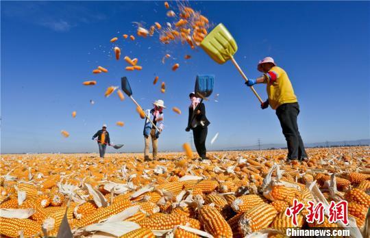 寒露时节甘肃张掖80万亩玉米晾晒忙