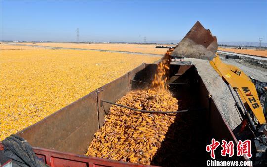图为将晾晒好的制种玉米装车运输。 王将 摄