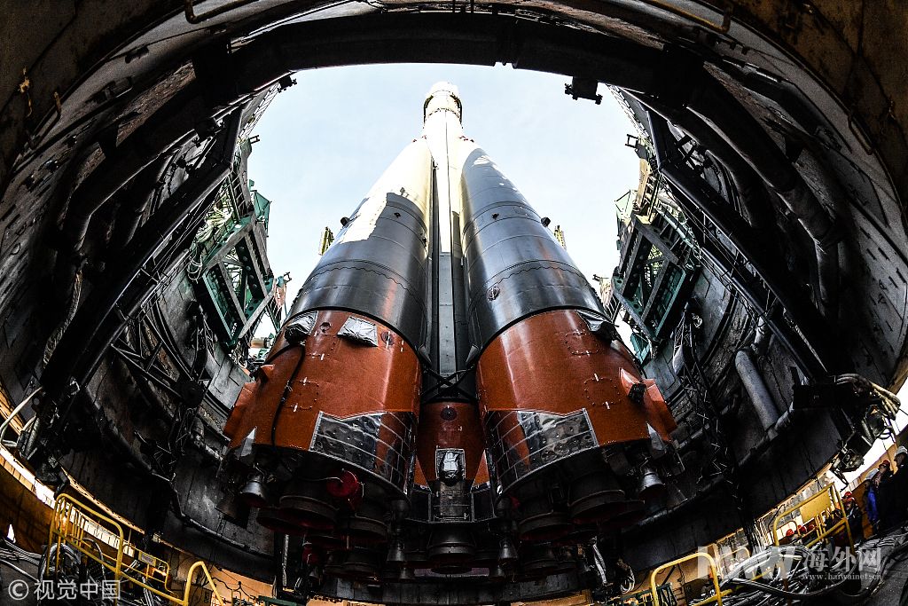 当地时间2018年10月9日,哈萨克斯坦贝康诺,Soyuz-FG火箭助推器与俄罗斯Soyuz MS-10宇宙飞船一起被运送到贝康诺太空发射场。该航天器计划将于2018年10月11日升空前往国际空间站。