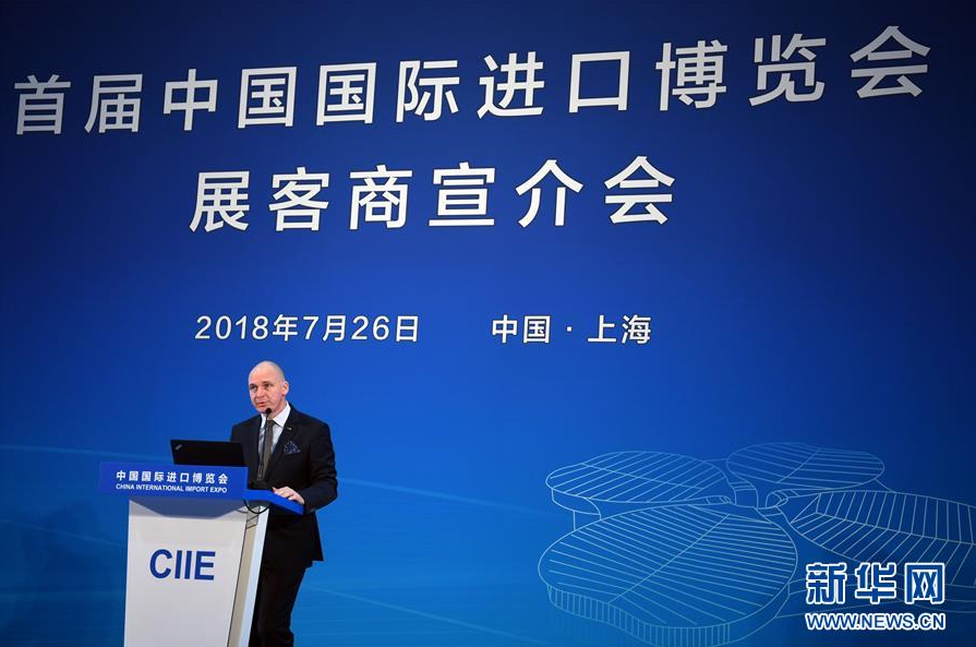 7月26日,法国乐斯福集团大中华区总裁浦建菲在首届中国国际进口博览会展客商宣介会上介绍企业产品。作为全球首个以进口为主题的国家级博览会,即将在100天后举行的首届中国国际进口博览会牵动着所有人的心。这次盛会的举办地上海,已经迈入进口博览会筹备最后“冲刺期”。新华社记者 金良快 摄