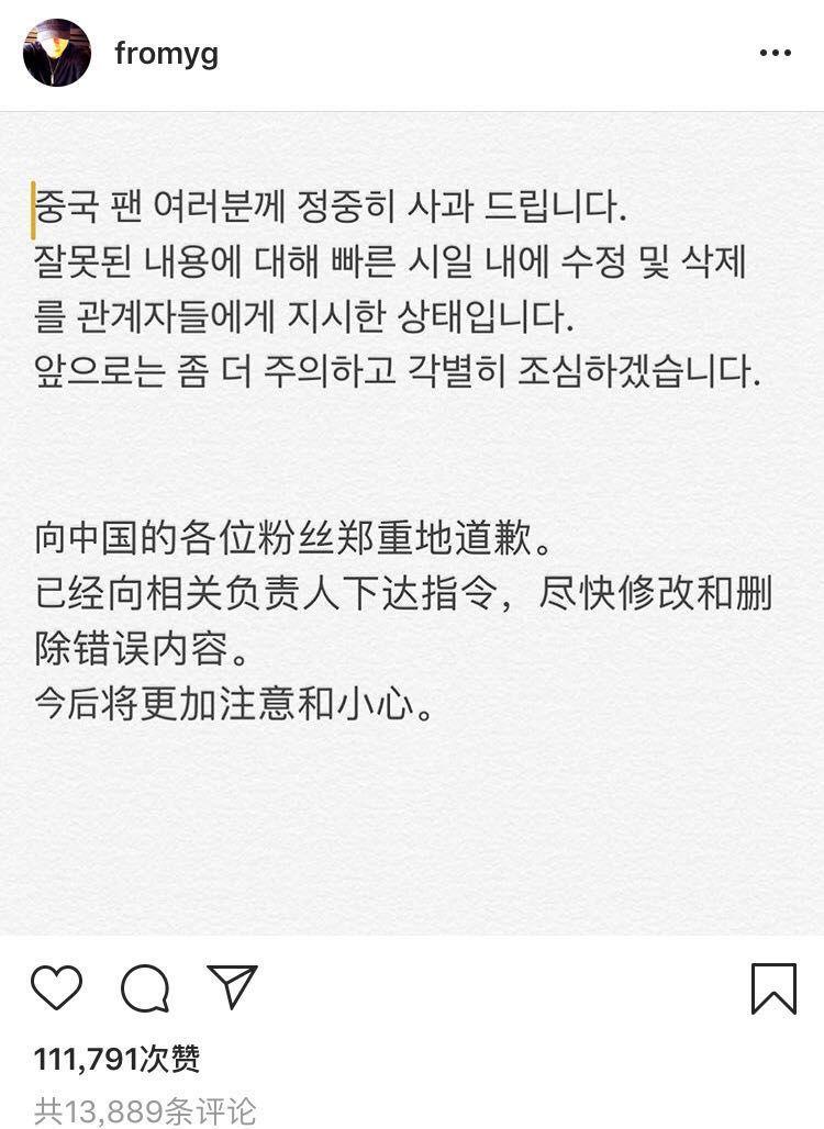 韩娱乐公司老板致歉:向中国的各位粉丝郑重地道歉,已经向相关负责人下达指令,尽快修改和删除错误内容,今后将更加注意和小心。