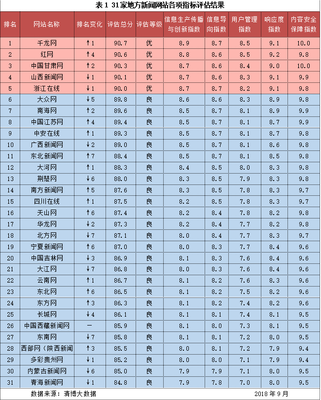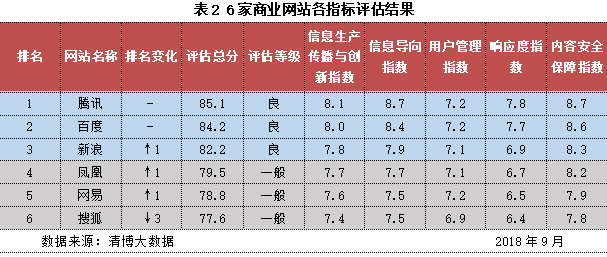 10月13日,中国互联网络信息中心CNNIC发布《网站信息生态指数2018年9月榜》。评估结果显示:地方新闻网站生态表现优秀的网站数量有所增加,排名变化明显,信息导向能力、内容安全保障能力有所下降;主要商业网站生态总体向好,但信息导向能力仍需加强。