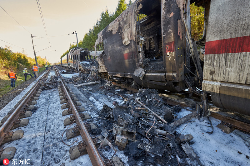 当地时间2018年10月12日,德国莱茵兰-普法尔茨Dierdorf,一辆城际列车(ICE)在科隆和法兰克福之间的路上起火,500名乘客安全脱险。