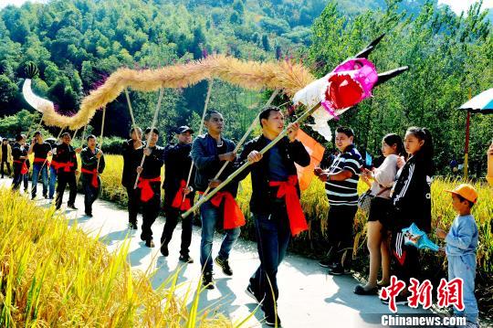江西德兴农民舞“稻草龙”庆丰收祈丰年