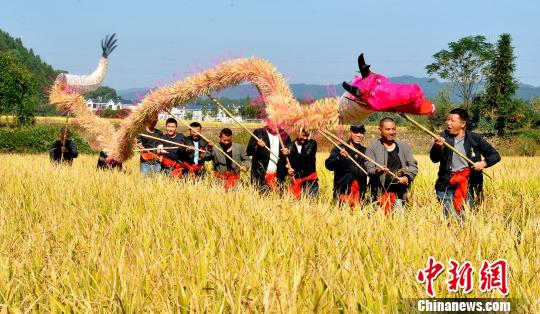 江西德兴农民舞“稻草龙”庆丰收祈丰年