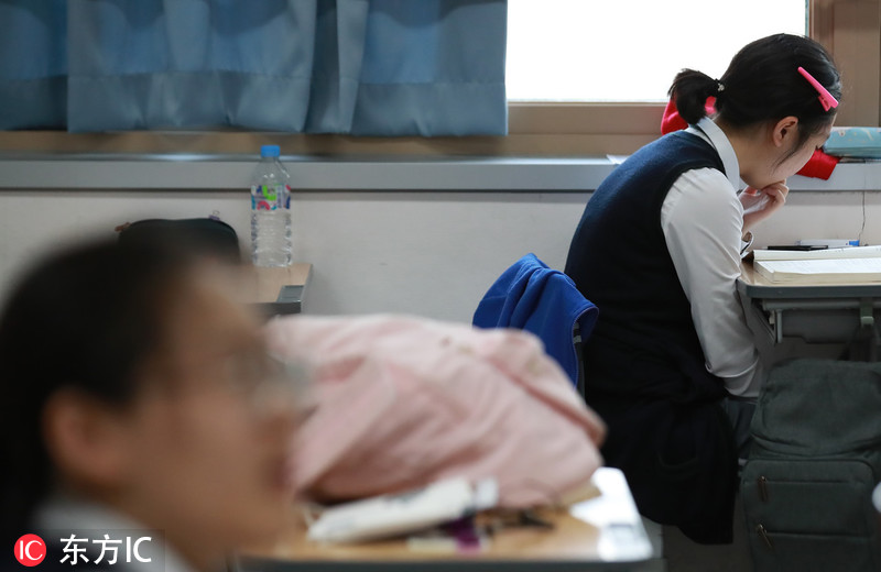 当地时间2018年10月16日,韩国首尔,高三学生正在参加今年高考前的最后一次全国模拟考试。2019学年大学修学能力考试(高考)将于今年11月15日进行。