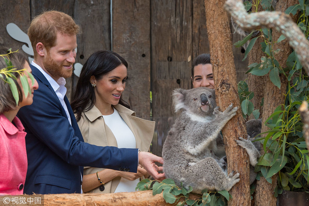 哈里王子夫妇在悉尼动物园与考拉母子合影 考拉宝宝与梅根同名