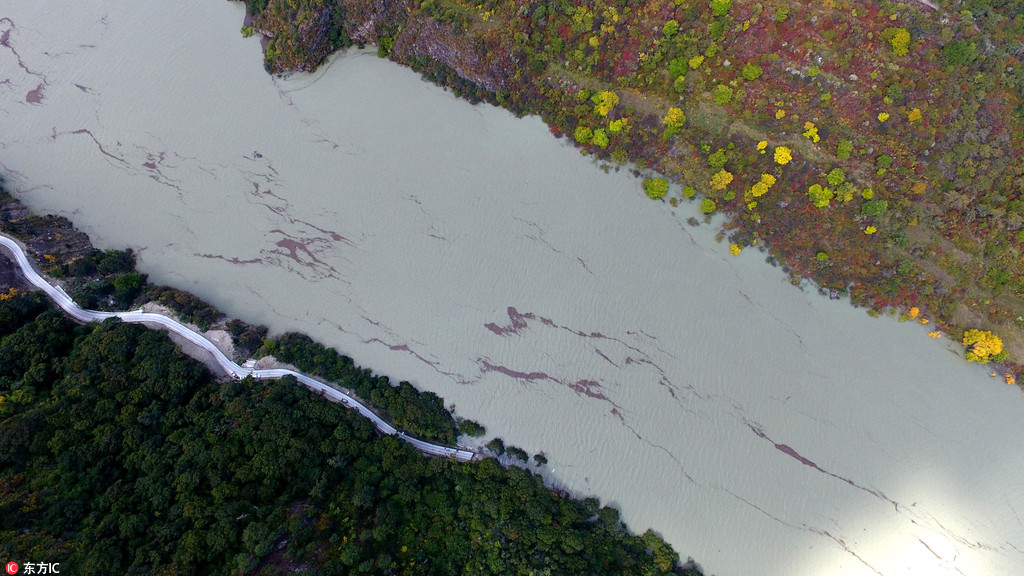 雅鲁藏布江现堰塞湖险情 西藏武警昼夜救援
