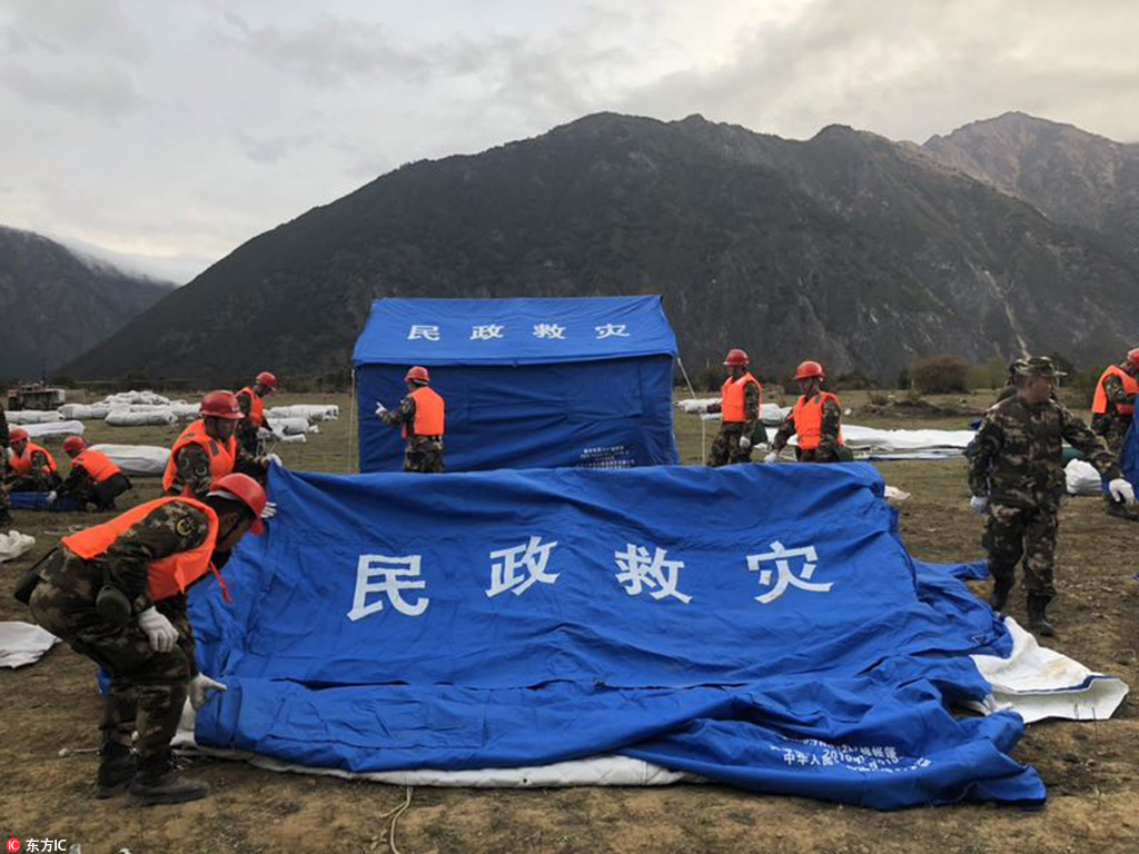 10月18日上午,侦查组再次赴一线侦查实情,为下步救援行动的开展做好先期准备;下午,为了不让安置点群众受冻,支队积极组织官兵进行搭建帐篷等工作,为可能发生的突发情况做好万全准备。目前,林芝支队240名兵力全时全装做好抢险救援准备,全力确保人民群众生命财产安全。