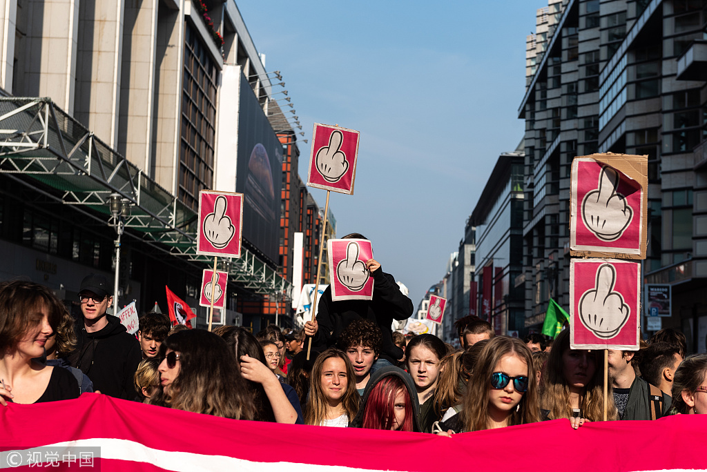 当地时间2018年10月18日,德国柏林,当地数百名学生组织罢课游行,呼吁建立公平、自主的教育体系。
