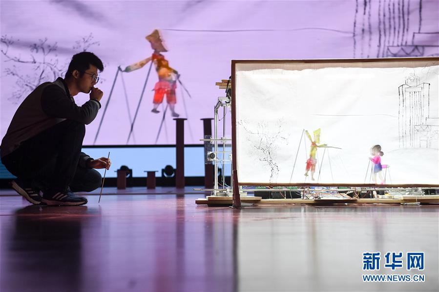 10月21日,在位于安徽合肥的中国科学技术大学,“人五成影”队带着皮影戏机器人参加比赛。 新华社记者张端摄