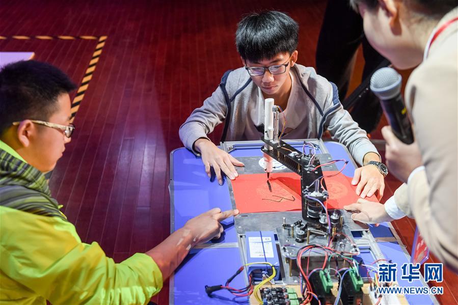 10月21日,在位于安徽合肥的中国科学技术大学,“Red Brick”队参加机器人比赛。 新华社记者张端摄