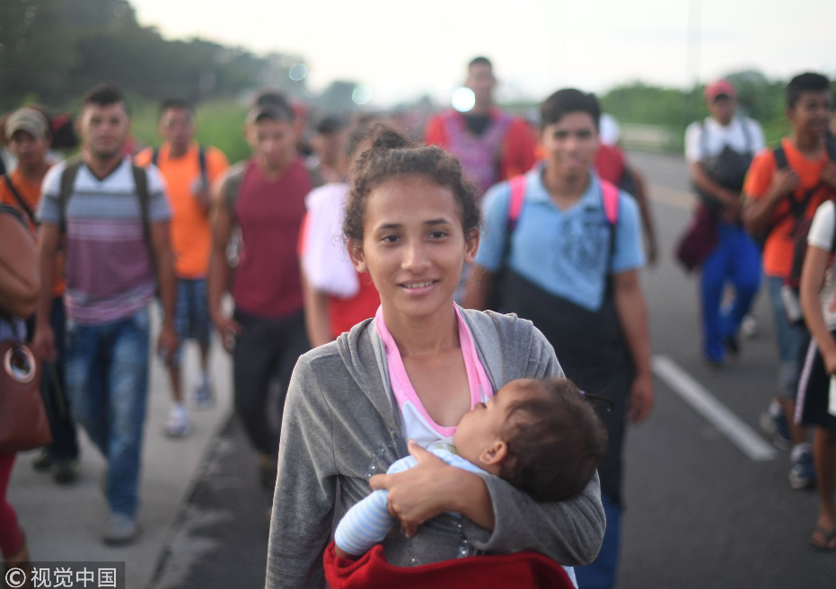 人山人海!中美洲移民欲借道进入美国 精疲力尽睡街头