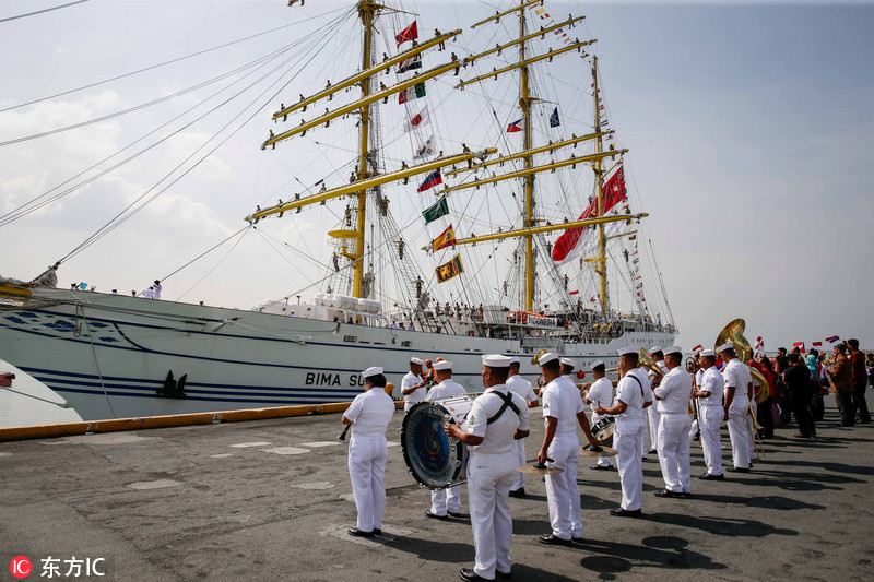 当地时间2018年10月22日,菲律宾马尼拉,印尼海军“BIMA SUCI”号风帆训练舰抵达马尼拉港口,进行友好访问。