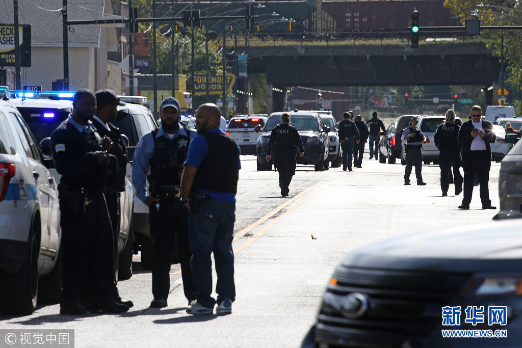 当地时间2018年10月22日,美国芝加哥,当地举行一场葬礼后发生袭击,共有6人遭到枪击,目前当地警方已在对该案进行调查。(图片来源:视觉中国)