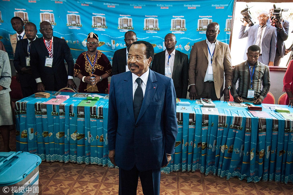 当地时间2018年10月22日,喀麦隆,喀麦隆宪法委员会当日公布的总统选举计票结果显示,执政党喀麦隆人民民主联盟候选人、现任总统比亚获得71.28%的选票,以绝对优势连续第七次赢得总统选举。