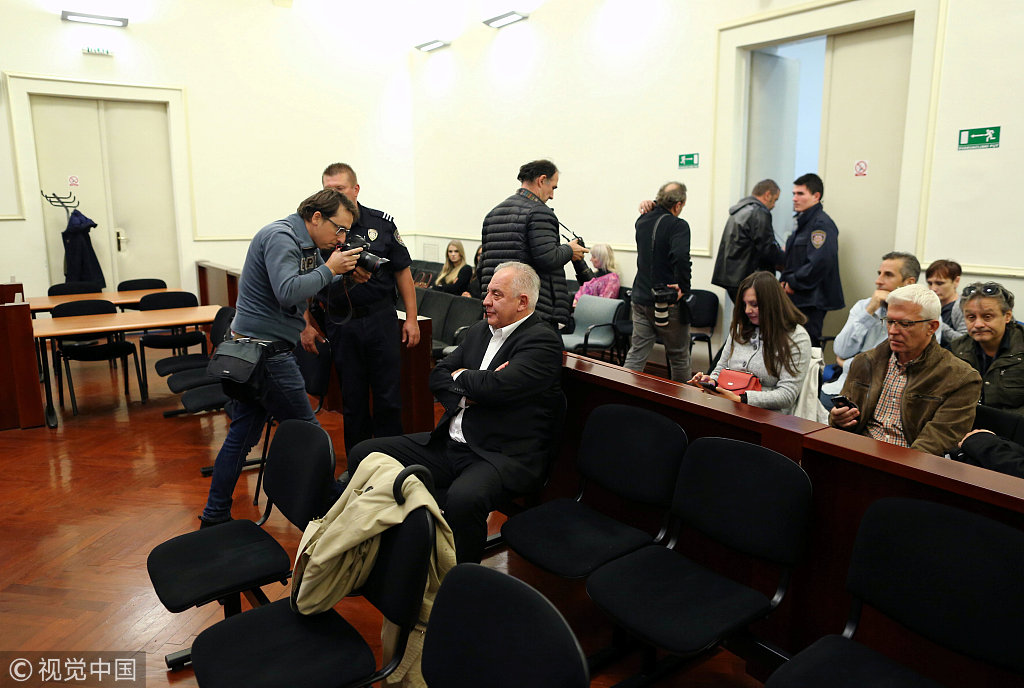 当地时间2018年10月22日,克罗地亚萨格勒布,克罗地亚前总理Ivo Sanader出庭受审。克罗地亚法院周一以发“战争财”罪判处其两年半徒刑。
