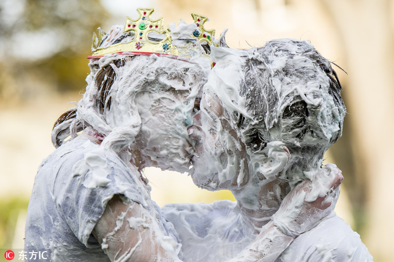英国大学用“泡沫大战”迎新 威廉凯特曾在此相遇