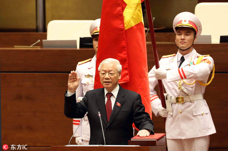 当地时间2018年10月23日,越南河内,越共中央总书记阮富仲当选越南国家主席,宣誓就职。