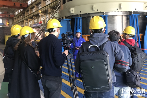 两岸媒体人在哈尔滨电机厂采访相关负责人。(中国台湾网 李奕均 摄)