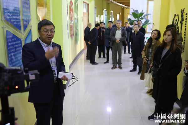 哈尔滨海峡两岸技术移转育成中心相关负责人杨喆向两岸媒体人介绍相关情况。(中国台湾网 李奕均 摄)