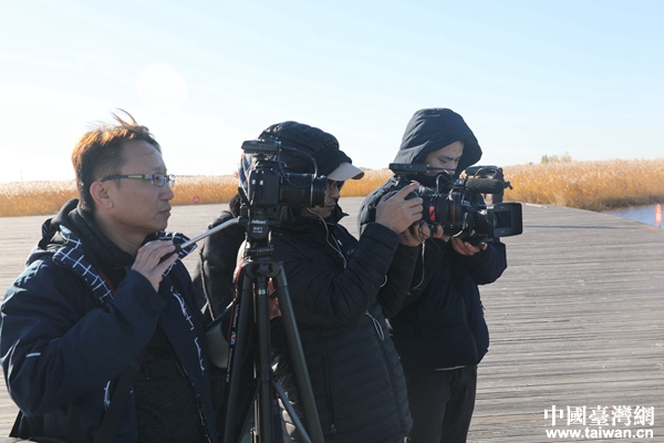 两岸媒体记者在扎龙国家级自然保护区忙着拍摄。(中国台湾网 李奕均 摄)