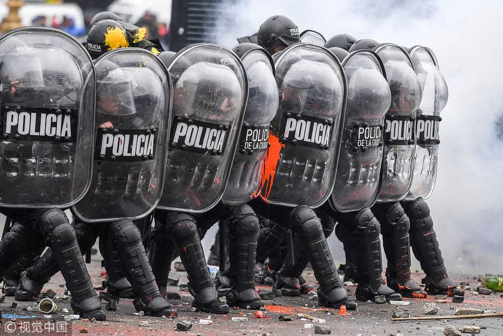 当地时间2018年10月24日,阿根廷布宜诺斯艾利斯,阿根廷众议院当日进行有关2019年政府紧缩预算的首次辩论,其目的是实现与国际货币基金组织(IMF)达成的财政收支平衡协议,但财政紧缩政策遭到工会和民众的反对,愤怒的人们在国会外示威游行,并与防暴警察发生冲突。