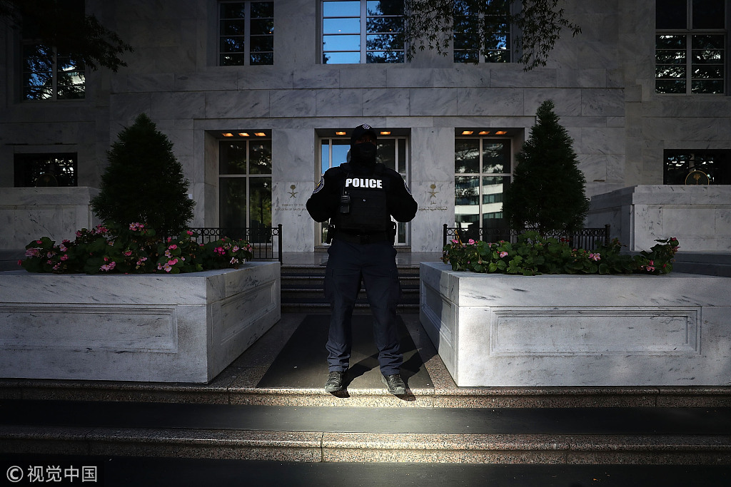 华盛顿民众“围堵”沙特使馆抗议卡舒吉遇害