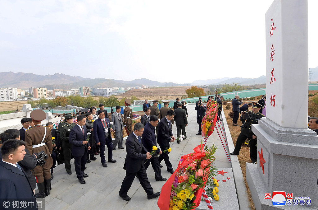 当地时间2018年10月25日,朝鲜平壤,当天是中国人民志愿军赴朝参战68周年纪念日。据朝中社报道,值此纪念日,平壤市江东郡和顺安区的中国人民志愿军烈士墓改建为烈士陵园,并于25日举行竣工仪式。