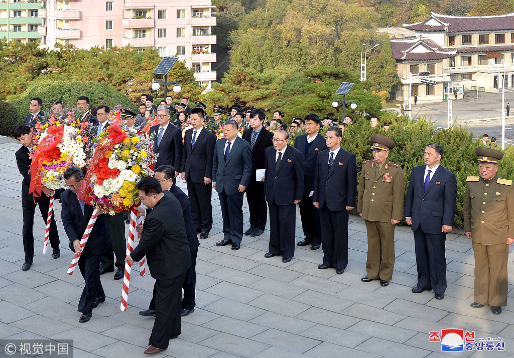 当地时间2018年10月25日,朝鲜平壤,当天是中国人民志愿军赴朝参战68周年纪念日。据朝中社报道,值此纪念日,平壤市江东郡和顺安区的中国人民志愿军烈士墓改建为烈士陵园,并于25日举行竣工仪式。