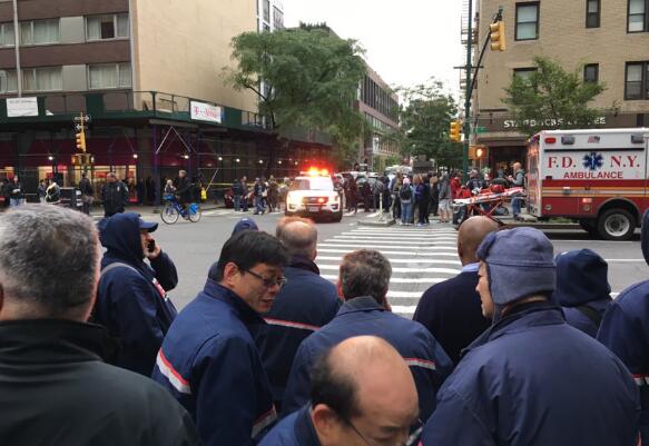 纽约警方在曼哈顿城发现可疑包裹。(图源:CNN)