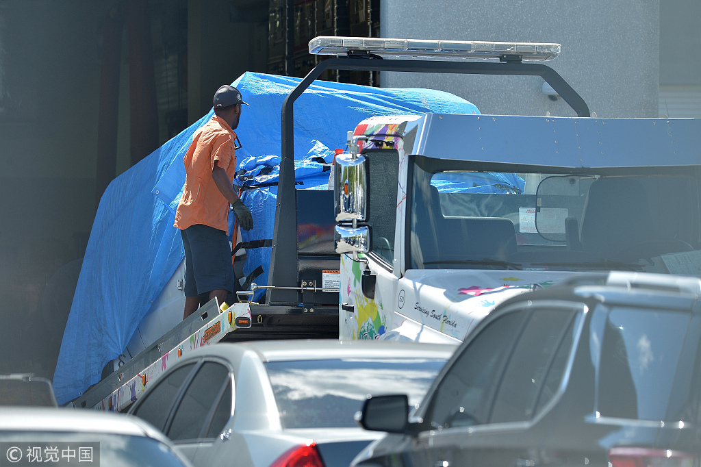 当地时间2018年10月26日,美国佛州,在炸弹包裹的调查中,一辆贴有支持特朗普和反民主党的贴纸的白色货车被发现。当天,邮寄多个炸弹包裹给部分民主党人的嫌犯被捕。据报道,嫌犯的车窗上贴了许多特朗普照片。来源:视觉中国