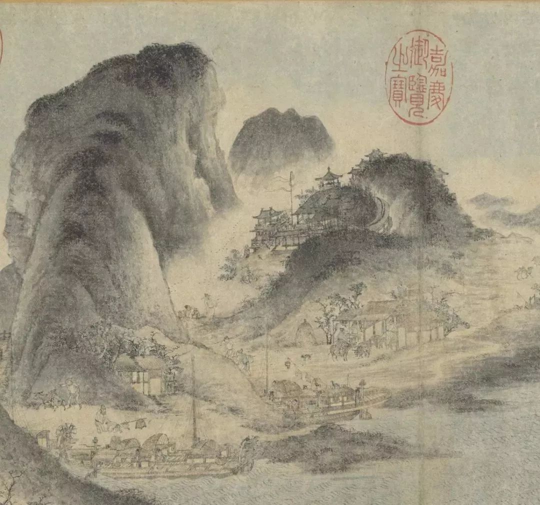 《江帆山市图》 佚名 28.6 x 44.1 cm 台北故宫博物院藏