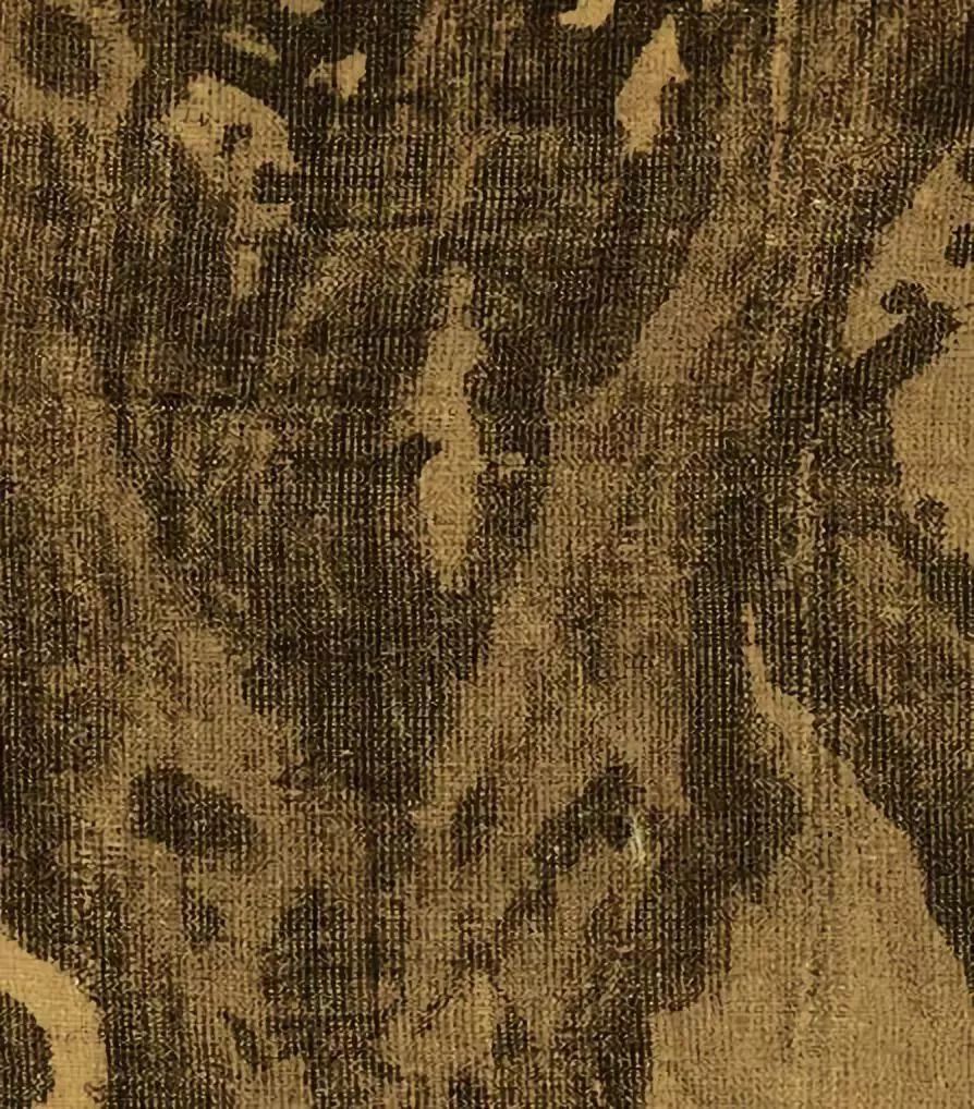 范宽的签名相当隐蔽,如果不是将这件作品放大 10 倍,那隐藏在“运输人”右侧树丛中的签名恐怕不会被人发现。