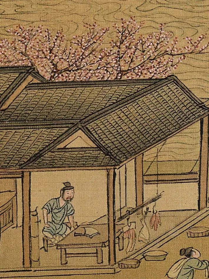 在仇英的《清明上河图》中,最有意思的应该属于下面这个部分——休息中的人、生意不太好的店主、发呆的桥上人……形形色色的描绘,生动至极。