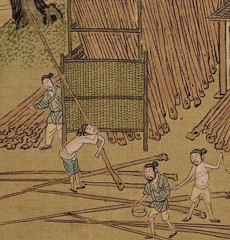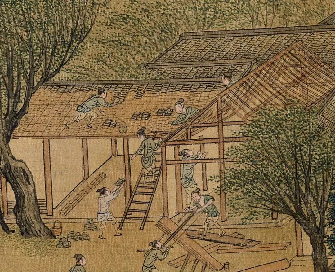捕鱼、盖房、打架……仇英将我们带入了一个正在进行的画面中,这些人物并非静止,他们只是被短暂定格在了这一瞬间,下一个动作,似乎每个人可以预见得到。