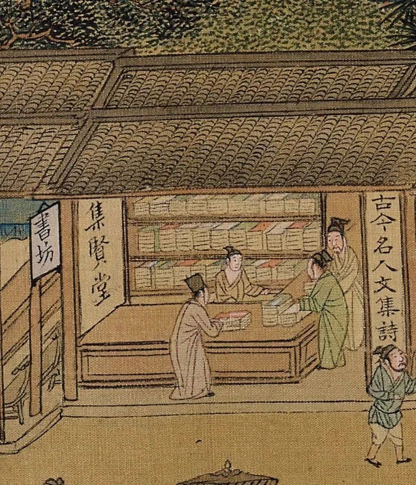 在明代苏州城的河两岸,集合了几十家的各类商铺,这里既有常见的学堂及面店,也有花店、书坊和折扣店,甚至还有专门的儿童诊所,社会分工在明代已经比较精细。