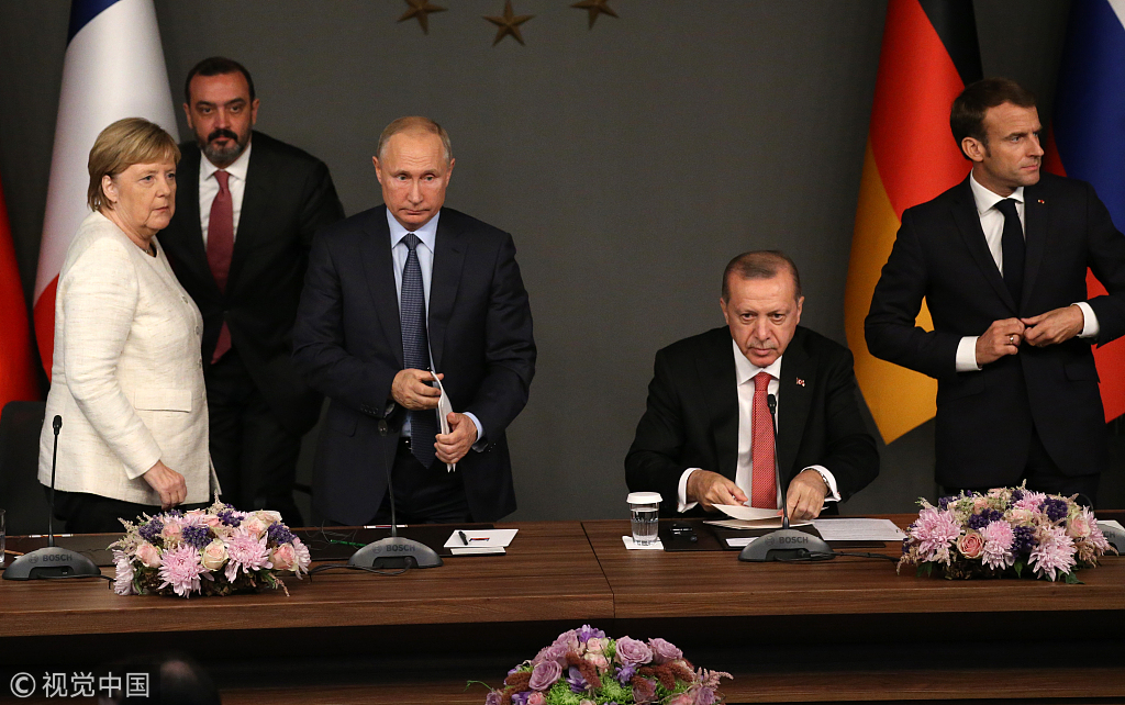 当地时间2018年10月27日,土耳其伊斯坦布尔,土耳其将举办叙利亚问题土、俄、法、德“四方峰会”,德国总理默克尔、土耳其总统埃尔多安、俄罗斯总统普京和法国总统马克龙出席。此次峰会将试图找到叙利亚内战的持久性政治解决方案。