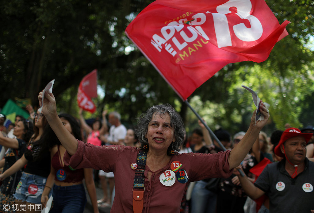 当地时间2018年10月27日,巴西多地,巴西大选在即,选民参加集会活动。巴西总统大选将于28日举行第二轮决选投票。