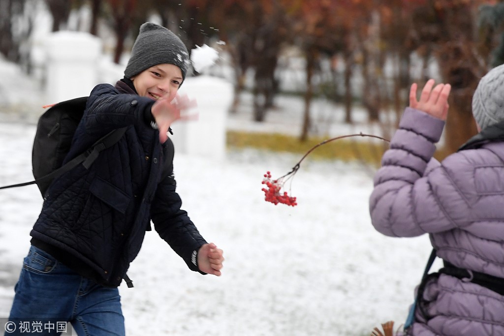 俄罗斯喀山迎来初雪 雪景伴秋色美哭了