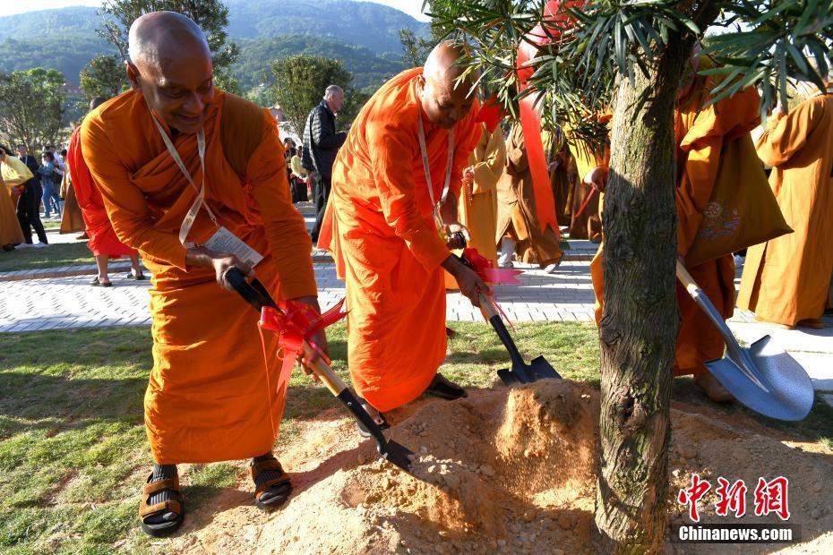 10月28日下午,第五届世界佛教论坛“同愿林”种植暨纪念碑揭幕活动在福建省莆田市南湖公园举行,200余名中外高僧大德及嘉宾出席活动。中新社记者 王东明 摄
