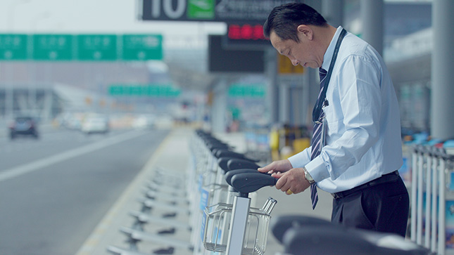 怎么让旅客随手就能拿到车?他们琢磨了很多人性化措施:顺旅客行进路线45度摆放,行李提取区鱼骨形无死角摆放;到达廊桥口车辆全覆盖,布满虹桥T1、T2航站楼的出发车道;手推车之间拉开间距,“拉松”后,旅客一下就能拿出来……看似平凡的点滴,让“虹式手推车服务”,获得了全球旅客的赞誉。