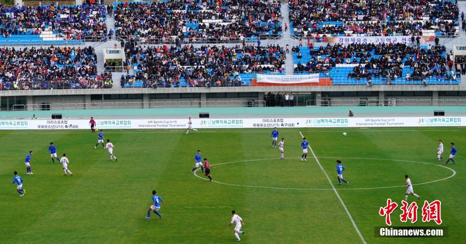 10月29日,第五届阿里体育杯15周岁以下国际青少年足球赛举行A组揭幕战,由韩国江原道队对阵朝鲜的青年足球队。中新社记者 曾鼐 摄