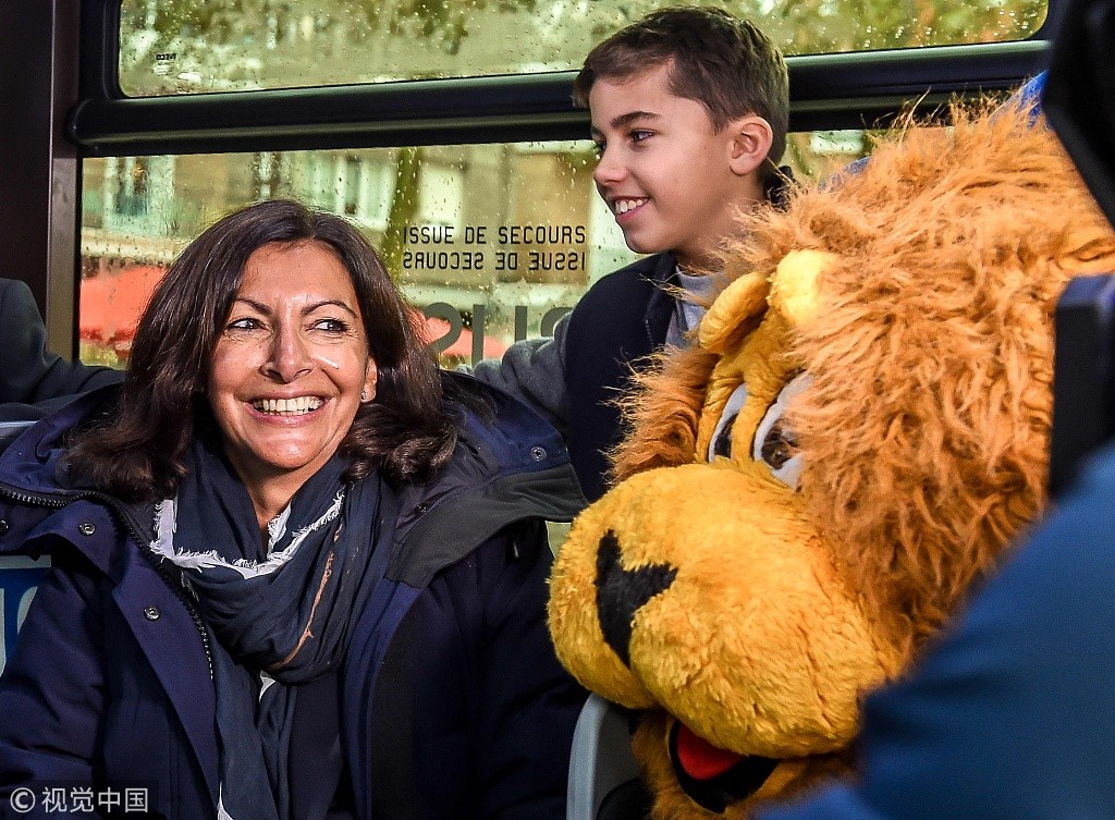 法国敦刻尔克推粉色免费公交 巴黎女市长到访“挤公交”