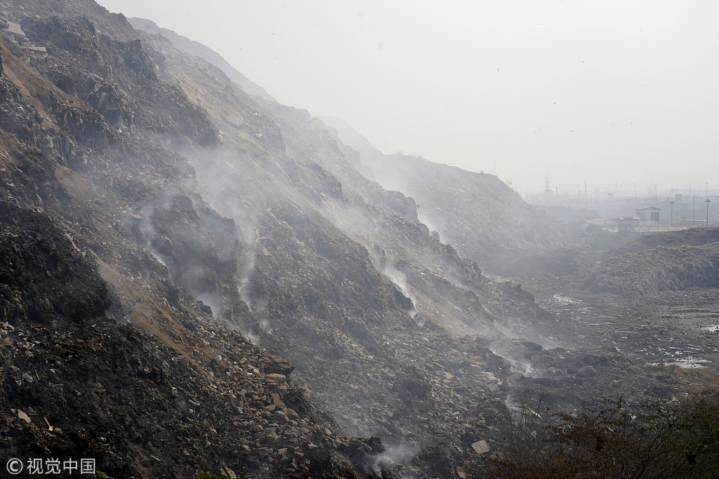 当地时间2018年10月30日,印度新德里,当地的垃圾堆积成“山”。