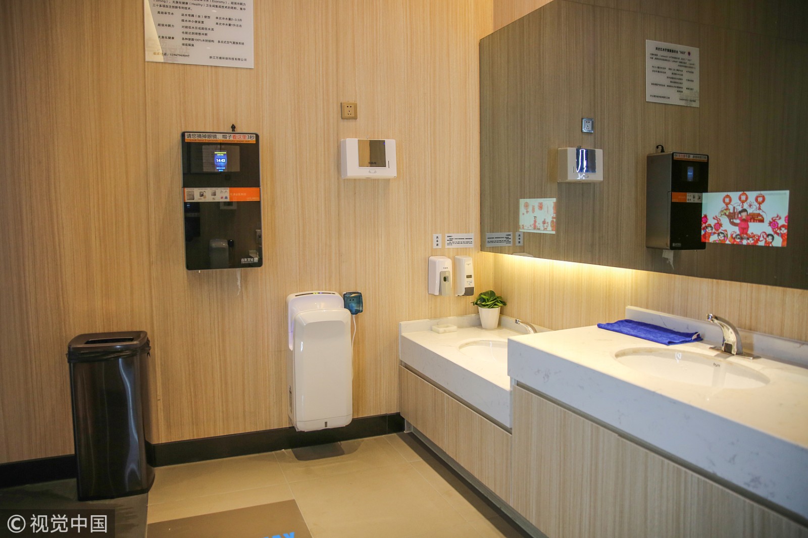 这座占地100多平方米的新型公厕设有公共卫生间、化妆间、母婴室、残疾人设施、公益图书吧等各类生活设施,智能化除臭、空气质量监测这些设备更是让这个公厕显得科技感十足。