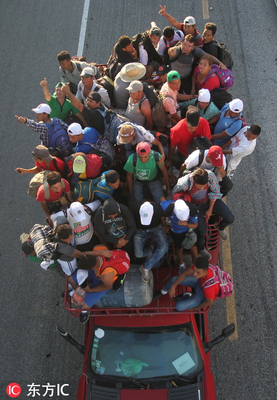 当地时间2018年10月25日,墨西哥,由洪都拉斯人组成的“移民大篷车队”离开马帕斯特佩克,朝着美墨边境挺进。
