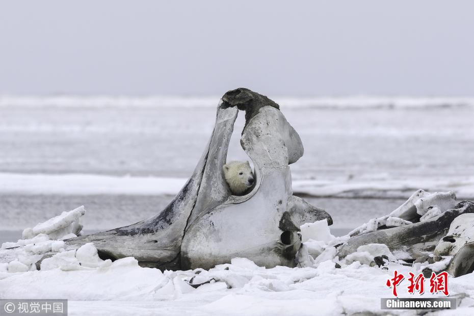 11月1日讯,美国阿拉斯加州,一只北极熊妈妈带着幼崽们外出觅食,发现了一节长4.5米的北极露脊鲸骸骨。75吨重的鲸鱼对因纽皮亚特人来说是神圣的,他们每年要吃三次鲸鱼,把骨头放在指定的地方,让北极熊吃完粘在骨头上的碎肉。摄影师Eiji Itoyama为拍摄此照片在位于北冰洋边缘的阿拉斯加卡克托维克村停留了5天。