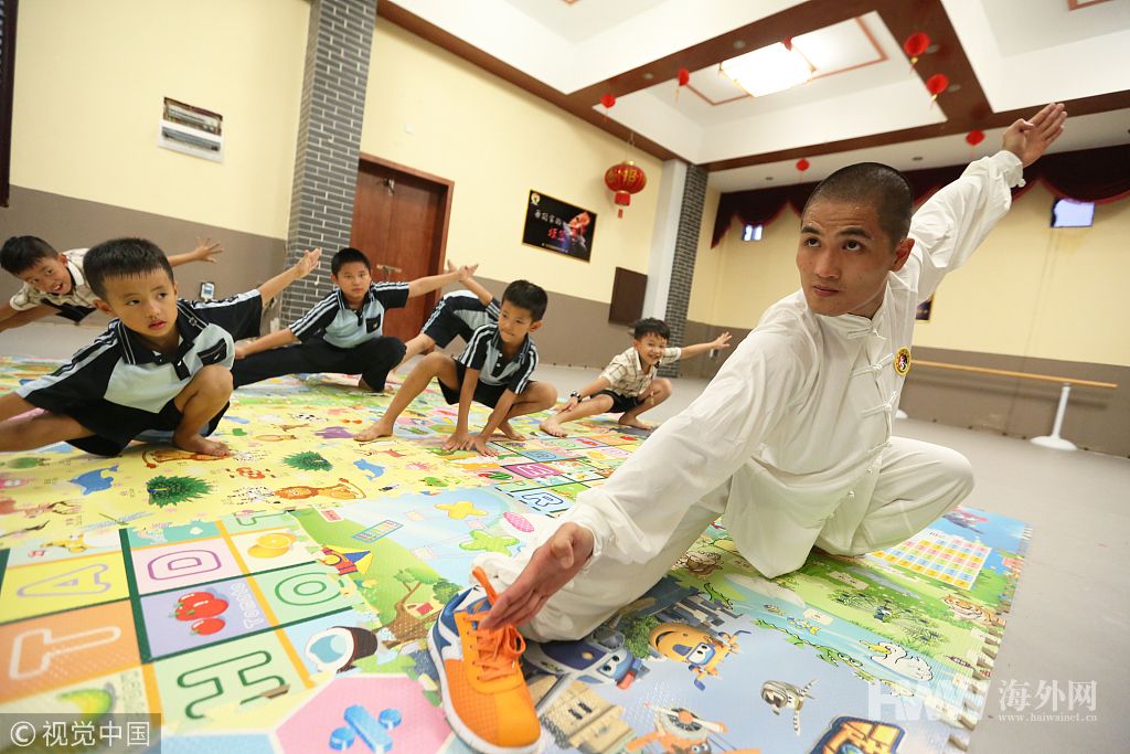2017年9月29日,广西南宁,今年27岁的黄威运从小就喜欢武术,毕业后,他在南宁开了一家武馆。图为黄威运作武术指导。