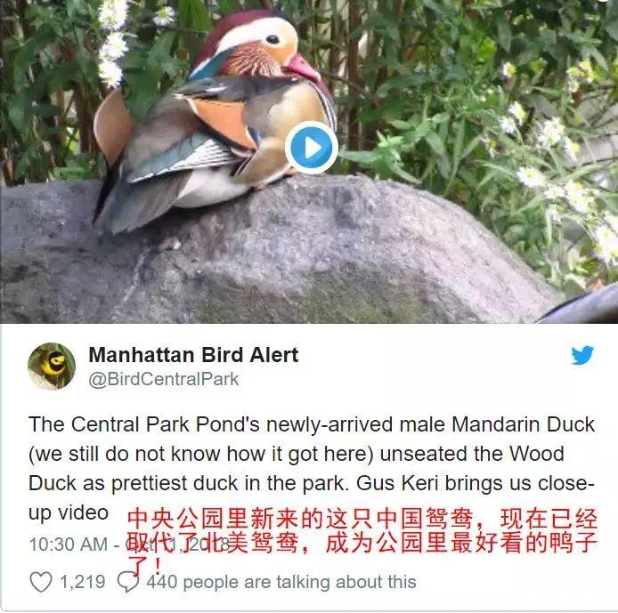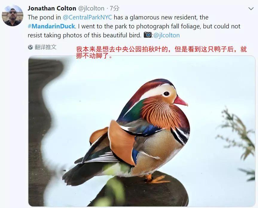 曼哈顿的鸟类爱好者社团“Manhatten Bird Alert”,已经把这只中国鸳鸯封为公园最美鸭子!